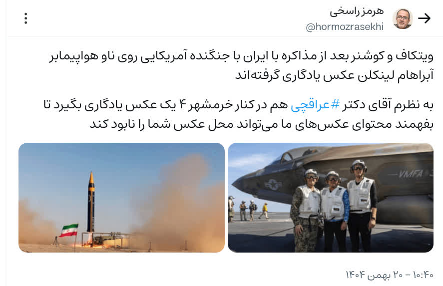 به نظرم آقای دکتر عراقچی در کنار خرمشهر ۴ یک عکس یادگاری بگیرد تا بفهمند محتوای عکس های ما می تواند محل عکس شما را نابود کند.