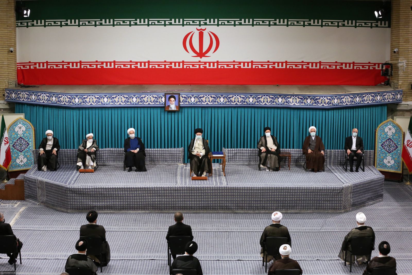 در تصاویر مراسم تنفیذ پرشکیان ازدحام مهمانان دیده می شود. علاوه بر این مقامات حاضر در جایگاه با فاصله کمی از هم نشسته و هیچ کدام ماسکی بر صورت ندارند.