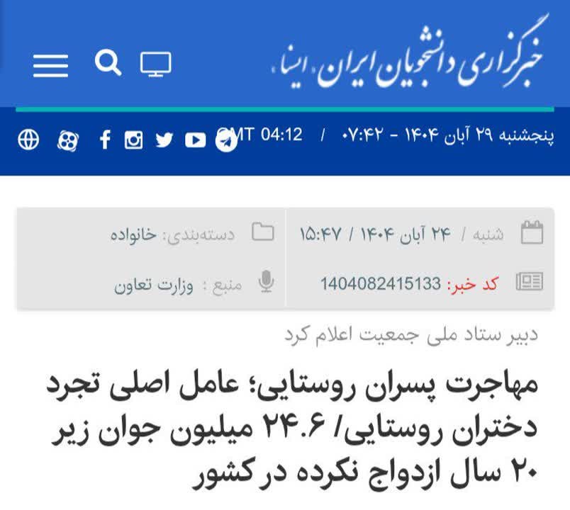 گروه جامعه جهان نیوز: در سومین رویداد جایزه ملی جوانی که اخیراً برگزار شد دکتر مرضیه وحید دستجردی دبیر ستاد ملی جمعیت با اشاره به نتایج پیمایش ملی ارزشها و نگرشهای جوانان در سال ۱۴۰۳ گفت: «بر اساس آمار، ۱۱.۷ میلیون دختر و ۱۲.۹ میلیون پسر زیر ۲۰ سال در کشور هنوز ازدواج نکردهاند».