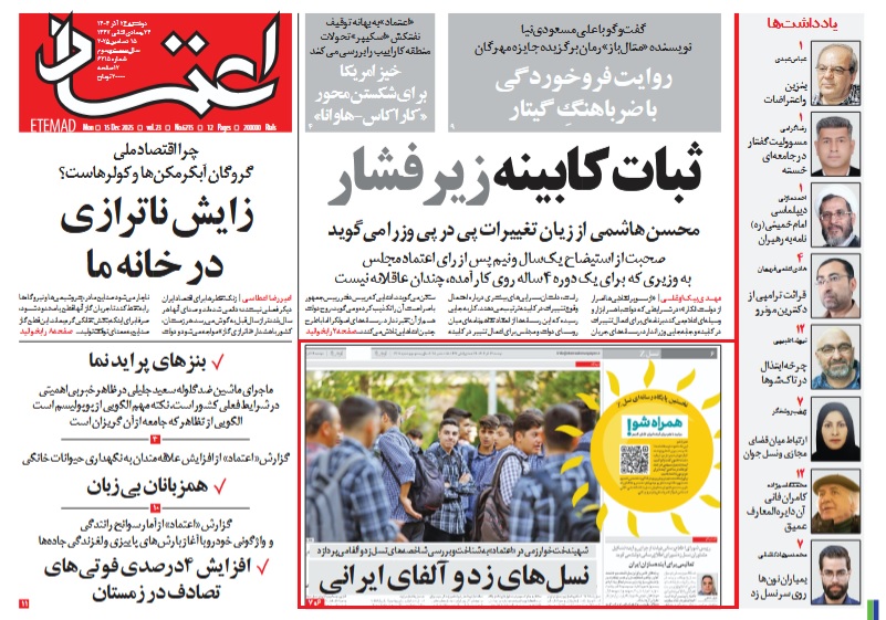گروه سیاسی جهان نیوز: روزنامه اعتماد متعلق به الیاس حضرتی، رئیس شورای اطلاع رسانی دولت به برداشت اصلاح طلبانه خود از ارتباط حاکمیت با نسل زد و آلفا پرداخته و نوشته است: «حكومت خوب مي‌داند كه نسل زد را از دست داده است و نيز مي‌داند كه جلب اعتماد اين نسل چقدر دشوار است، چون براي آن بايد از بسياري از خط قرمزهاي خود بگذرد. سعي دارد بر نسل آلفا تمركز كند، آن‌هم از طريق ارايه برنامه‌هاي آموزشي ديجيتال كه تحت نظارت او است. برنامه‌هايي كه اثربخشي آن جاي ترديد دارد. هدف اين برنامه‌ها پرورش نسلي وفادار و فرمانبردار است. حكومت شايد نداند كه اين نسل جوياي استقلال فردي و خودمختاري است و  زود مي‌آموزد همه ‌چيز را مورد پرسش قرار دهد و شك را جايگزين يقين سازد».