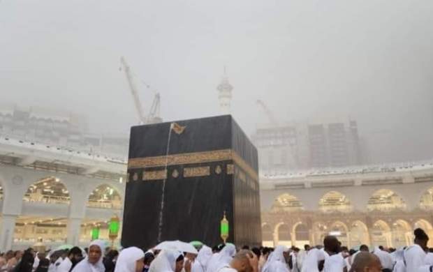 با وجود بارش شدید و سیلآسای باران در مسجدالحرام، زائران به سوی کعبه مشرف شده و در جوار خانه خدا به نیایش و اقامه نماز پرداختند.