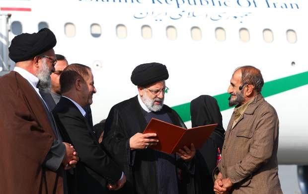 محمد حسین آریا معروف به مرد یک میلیون درختی به استقبال رئیس جمهور در فرودگاه یاسوج رفت و با اهدای لوحی از آیت الله رئیسی تقدیر کرد.