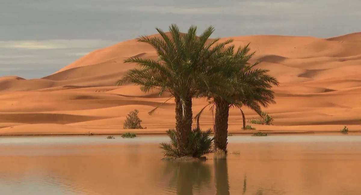 دریاچه یاسمینا، در نزدیکی روستای مرزوقه در مراکش در پی بارش سنگین باران احیا شد.