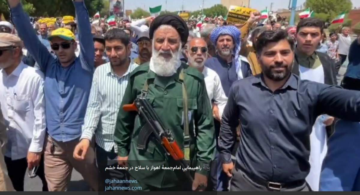 راهپیماییِ امامجمعهٔ اهواز با سلاح در جمعهٔ خشم را مشاهده می کنید.