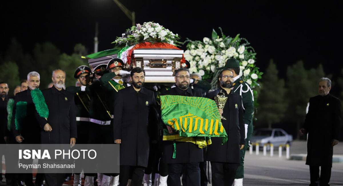 پیکر استاد فرشچیان توسط خادمان حرم امام رضا (علیهالسلام) مورد استقبال قرار گرفت.