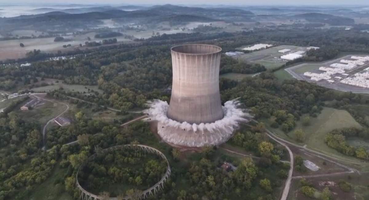 برج خنک‌کننده نیروگاه هسته‌ای در آمریکا طی ۱۰ ثانیه‌ به طور کامل تخریب شد. این برج نیم قرن بلاتکلیف بود.