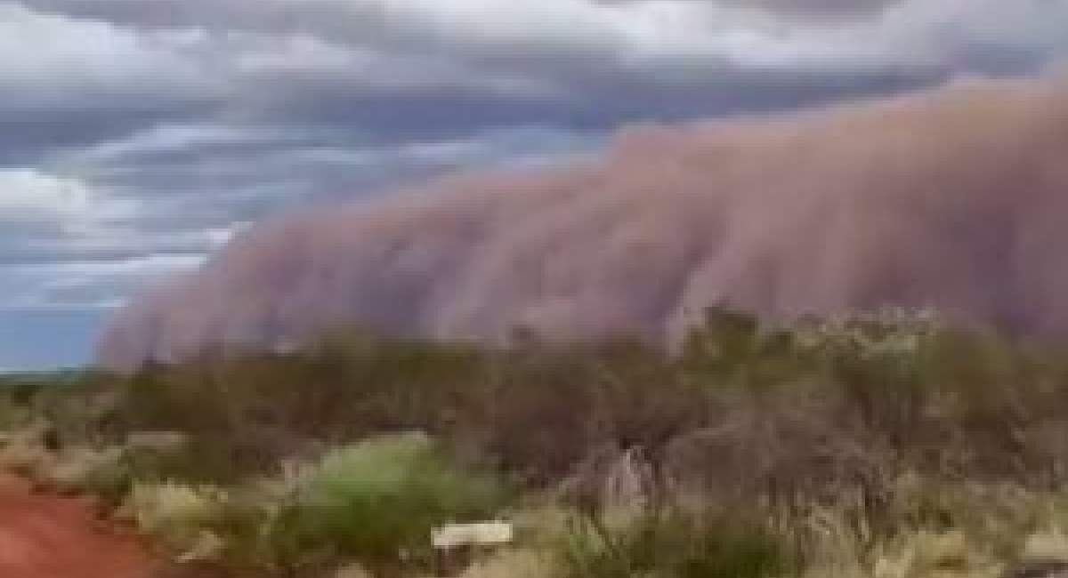 تصاویری از طوفان شن سهمگین از صحرای تانامی که از آسمان یکی از بزرگ‌ترین معادن زیرزمینی طلای استرالیا درحال عبور است.